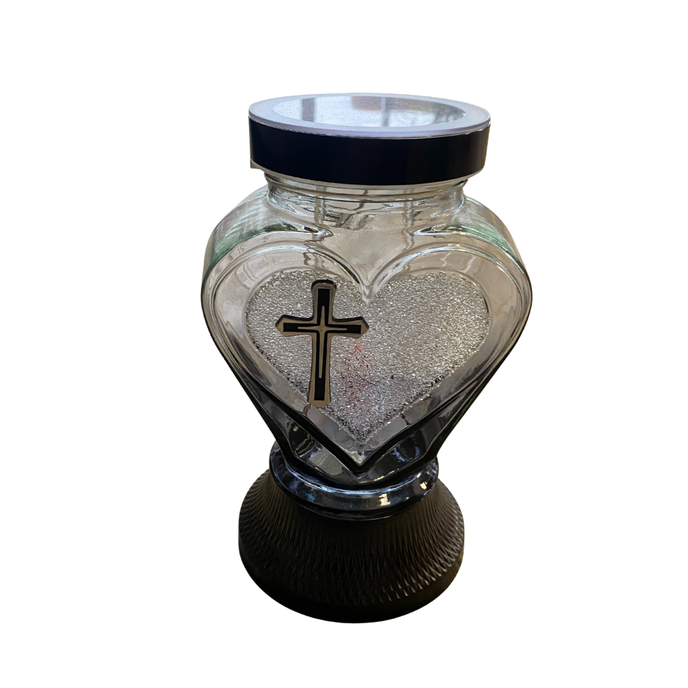 - Uctite si pamiatku svojich najbližších s LED kahancom v tvare srdca s krížom, ktorý spája vieru, nádej a nehasnúcu lásku