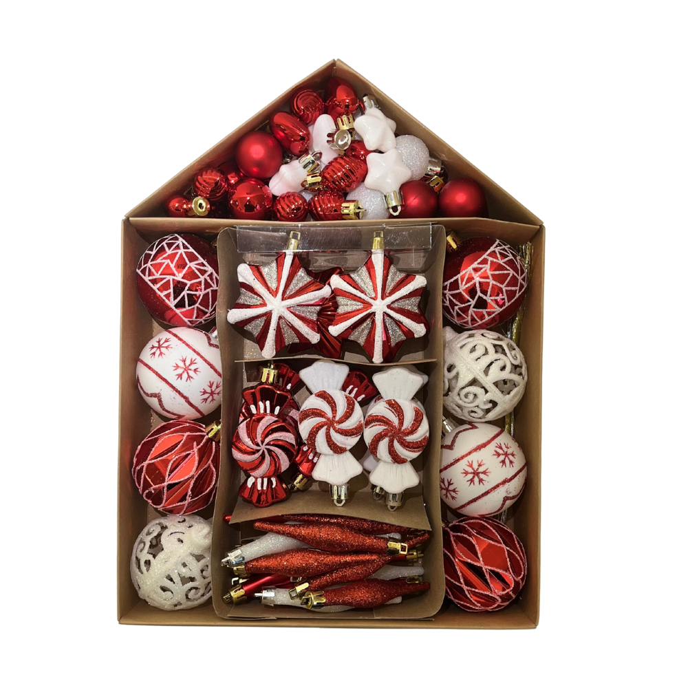 - Táto bohatá sada 73ks vianočných ozdôb obsahuje všetko, čo potrebujete na nádhernú a štýlovú výzdobu – od klasických guličiek rôznych veľkostí až po hviezdy, snehové vločky a ďalšie dekorácie